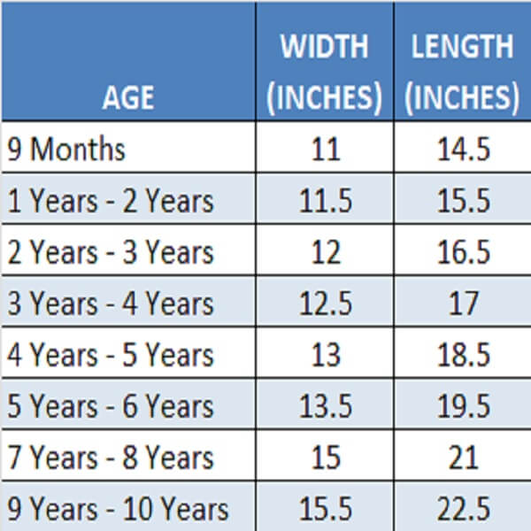 | AGE | WIDTH (INCHES) | LENGTH (INCHES) |