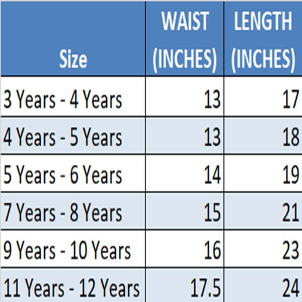 | Kids Sizes | 3 Years – 4 Years, 4 Years – 5 Years, 5 Years – 6 Years, 7 Years – 8 Years, 9 Years – 10 Years, 11 Years – 12 Years |