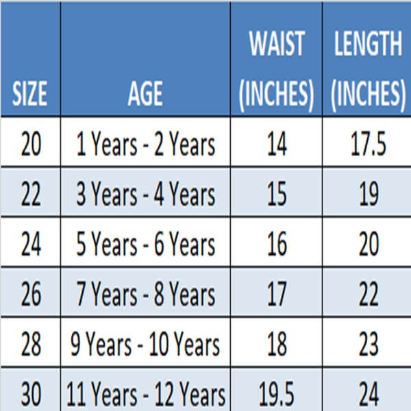 | Kids Sizes | 1 Year – 2 Years, 3 Years – 4 Years, 5 Years – 6 Years, 7 Years – 8 Years, 9 Years – 10 Years, 11 Years – 12 Years |