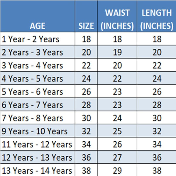| Kids Sizes | 1 Year – 2 Years, 2 Years – 3 Years, 3 Years – 4 Years, 4 Years – 5 Years, 5 Years – 6 Years, 6 Years – 7 Years, 7 Years – 8 Years, 9 Years – 10 Years, 11 Years – 12 Years, 12 Years – 13 Years, 13 Years – 14 Years |