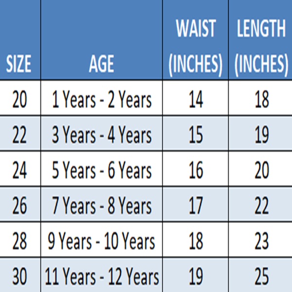 | Kids Sizes | 1 Year – 2 Years, 3 Years – 4 Years, 5 Years – 6 Years, 7 Years – 8 Years, 9 Years – 10 Years, 11 Years – 12 Years |