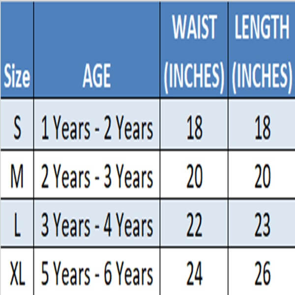 | Kids Sizes | 1 Year – 2 Years, 2 Years – 3 Years, 3 Years – 4 Years, 5 Years – 6 Years |